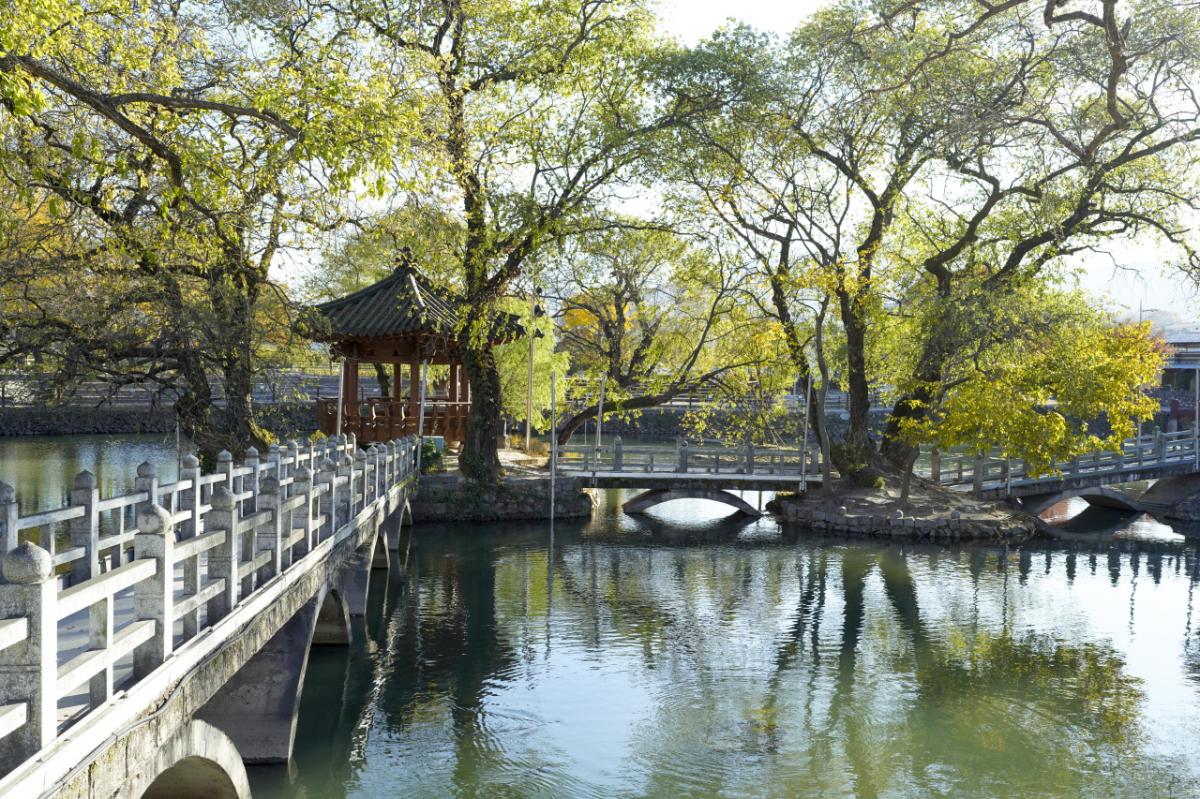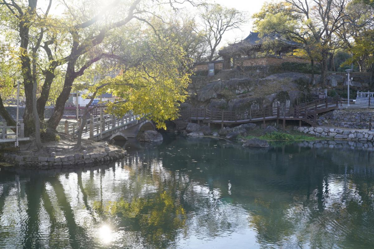 A pavilion built on a hill during the Joseon Dynasty to enjoy the arts. Every year, Haman's traditional folk event called Haman Nakhwa Nori, in which fireworks fall and scatter over water, is held in the Mujinjeong area to pray for the nation's peace and prosperity.