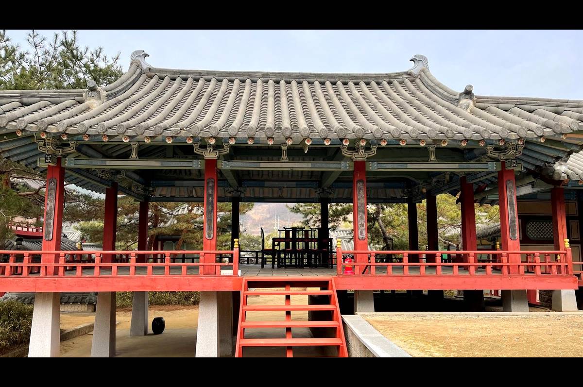 The Seodongyo Theme Park is an open set built on a land of approximately 33,000 m², featuring Taehaksa, which is equivalent to a modern scientific research institute, Baekjae Royal Palace, Royal Village, Queen's Residence, and a set for the drama The Greet Seer that dramatizes the founding process of the early Joseon Dynasty through geomancy. The SBS drama Ballad of Seodong (September 5, 2005 - March 21, 2006, 55 episodes) and various other historical dramas were filmed here, including The Greet Seer, The Legend, The Kingdom of the Winds, Gyebaek, Lee San, Wind of the Palace, Ja Myung Go, The Blade and Petal, and Gunman in Joseon, among others.