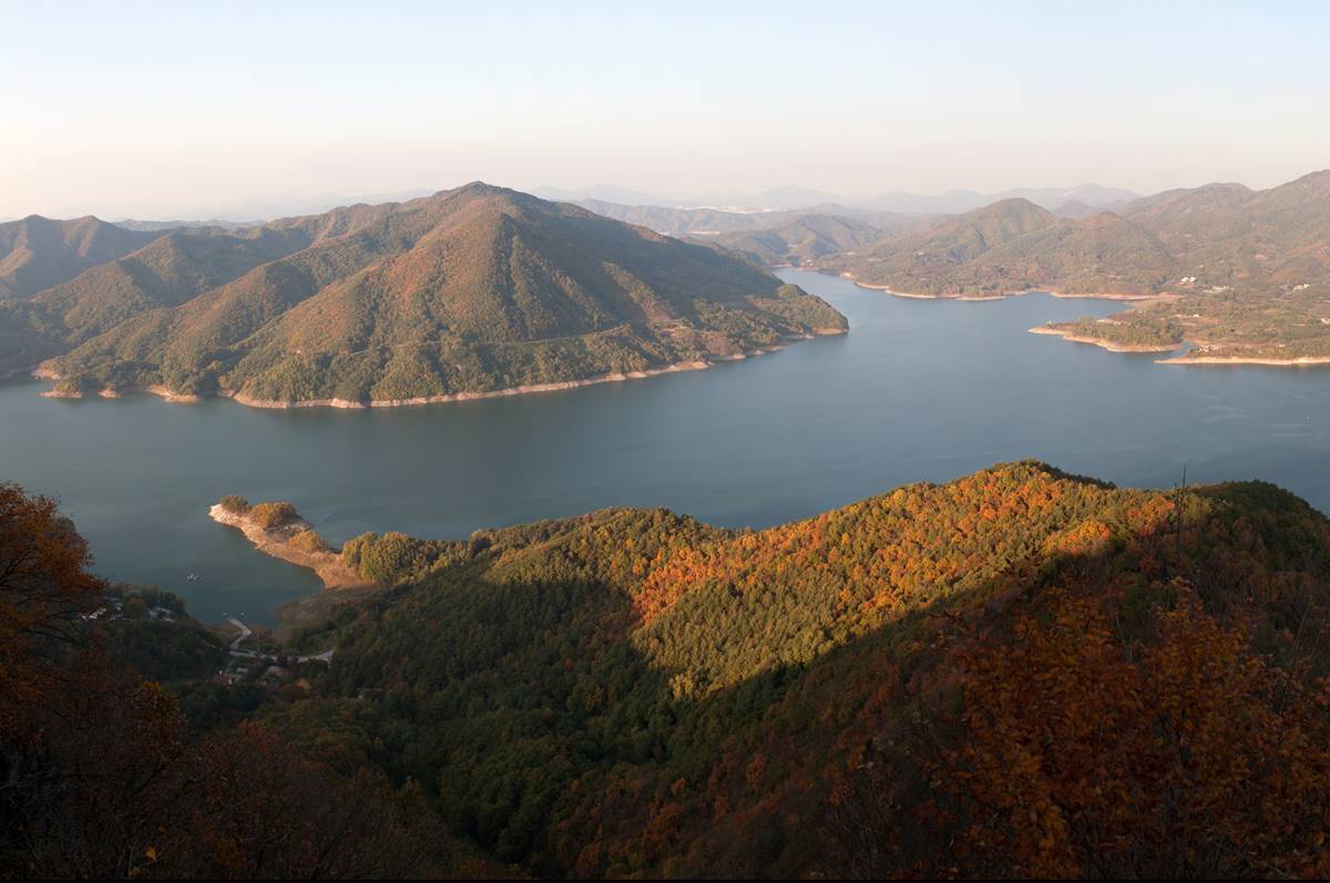 Rising to 531 meters, the mountain's ridges resemble the silhouette of a soaring hawk, which is why it's often referred to as Maebong, or Hawk Peak. Encircled by the Cheongpung Lake, the mountain offers stunning and invigorating views from every vantage point.