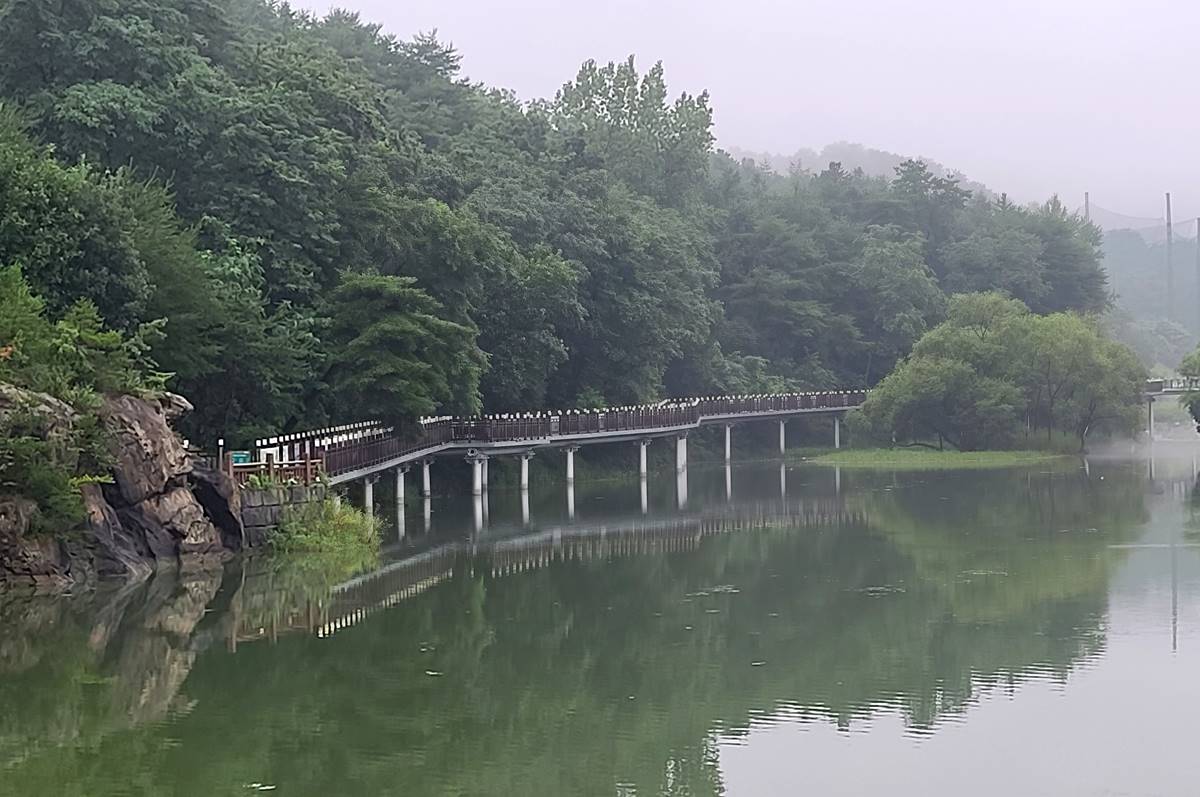 As one of Korea's most ancient reservoirs, this site enjoys a prime location just 3 kilometers from Jecheon's city center, ensuring convenience for visitors. The reservoir boasts an artificial waterfall, a scenic delight complemented by a glass observation deck perched above.